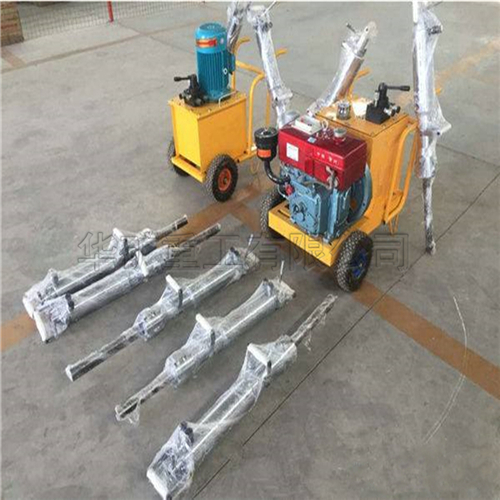 劈裂機又名分裂機,劈裂器,劈石機,開山機等,按動力站類型可分為:電動型、柴油型、 型、氣動馬達四種。按分裂槍材質(zhì)可分為:鋼制分裂槍與鋁合金分裂槍兩種。另還可以按分裂槍力量的大小來分類。該產(chǎn)品主要用于建筑石材的開采作業(yè);大塊礦石(金屬礦、非金屬礦)的二次解體;混凝土構(gòu)件(水泥路面、機床基礎(chǔ)、橋梁及房屋構(gòu)件)局部和全部拆遷作業(yè);天然石材開采、分裂、破碎。與上述領(lǐng)域傳統(tǒng)作業(yè)方式相比較,結(jié)構(gòu)簡單,操作方便,效率高,成本低、安全、節(jié)能、等優(yōu)點。該產(chǎn)品特別適用于大塊巖石的二次分裂,是一種完全可以取代爆破和手工解體的理想設(shè)備