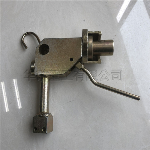 該產(chǎn)品為適合于煤礦單體液壓支柱用的恒壓注液槍。該注液槍由注液嘴,卡環(huán)進液管、槍體、差動活塞、控制頂桿、調(diào)節(jié)螺母、手動裝置、彈簧等組成。采用差動活塞鎖定控制頂桿,開啟進液閥,鎖定方式為機械式。當(dāng)單體液壓支柱的初撐力達到規(guī)定值時,差動活塞通過液壓差動自動解除閉鎖,關(guān)閉進液閥。也可通過手動裝置關(guān)閉進液閥。該恒壓注液槍可通過調(diào)節(jié)螺母調(diào)整彈簧力的大小,調(diào)整單體液壓支柱的初撐力。