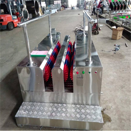 礦用洗靴機是井下人員升井后通過洗靴機時,洗靴機全智能控水、電、動力系統(tǒng)的運行,可以一次性洗凈靴子底紋和靴面靴筒上的煤泥,保持靴子表面的清潔。礦用洗靴機是主要由洗靴系統(tǒng)、支撐部件、傳動系統(tǒng)、電控系統(tǒng)、連接部件、人體行走扶手等構(gòu)成,安置在井口或副井井口洗靴池處。解決了員工升井后還要用手刷靴,費時費力還刷不干凈的問題,減輕了員工勞動強度,保持了井口衛(wèi)生,減輕了粉塵污染,又能節(jié)約用水,是礦井標準化建設(shè)的可靠產(chǎn)品。