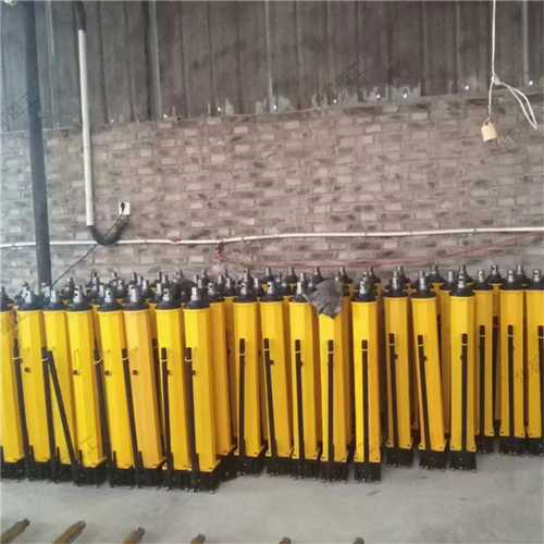 YT4-6A、YT4-8A型液壓推溜器,是為滿足煤礦炮采、普采工作面的需要而設(shè)計(jì)的手動(dòng)移溜器具。與其它移溜器械相比,具有適應(yīng)性強(qiáng)、機(jī)動(dòng)性好、操作省力、工效高、易維修、安全可靠,比集中供油的液壓千斤頂移溜可大量節(jié)省投資,經(jīng)濟(jì)上合算。 YT4-6A、YT4-8A液壓移溜器結(jié)構(gòu)為缸體外壁的前部和后部同向分別固定裝有前液壓閥和后液壓閥,在兩閥之間的缸體外壁相對(duì)的兩側(cè)固定裝有定位軸;缸體通過定位軸座落在固定座上的縱向長孔內(nèi);固定座的底部固定裝有底板,底板靠近活塞桿一端向上翹起;固定座的頂部固定裝有嗆頂座,嗆頂座上部的槽形結(jié)構(gòu)向后傾斜,并與水平面成20°-24°夾角。本實(shí)用新型設(shè)計(jì)合理,液壓注液槍注液與缸體分離,推溜器移動(dòng)方便,缸體兩端可調(diào);活塞桿可與擋煤板連接時(shí)正常接觸,延長設(shè)備使用壽命。