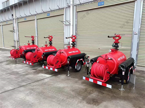 移動(dòng)干粉滅火裝置,以高壓氮?dú)鉃閯?dòng)力,將儲(chǔ)罐內(nèi)干粉滅火劑通過干粉炮或干粉槍噴向保護(hù)對(duì)象,由于干粉的比重較大,在氣流的作用下能覆蓋到火上不致被氣流沖散。干粉在火焰的作用下破壞了原有的結(jié)晶,以新的化學(xué)物質(zhì)中斷了燃燒的鏈?zhǔn)椒磻?yīng),窒息火焰,同時(shí)干粉在分解過程中大量吸熱,使著火區(qū)域溫度迅速下降,從而控制撲滅火災(zāi)。