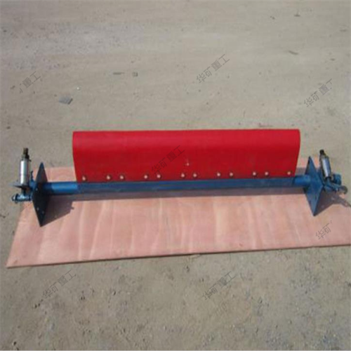 清掃器,刮板借彈簧壓力緊貼輸送帶的載荷面清掃卸載后粘結(jié)在輸送帶上的煤粉。清掃器在輸送機上有著不可忽視的作用。在運行中,如果人為的清除機尾滾筒附著物,往往容易發(fā)生嚴重人身傷亡事故。而清掃器有及時、方便地、快速的清除滾筒附著物的特點。