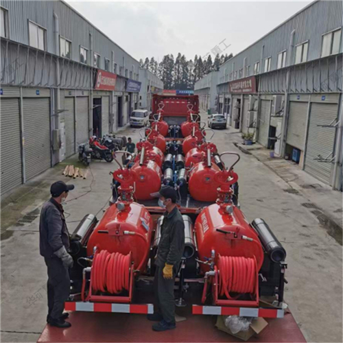 移動(dòng)干粉滅火裝置,以高壓氮?dú)鉃閯?dòng)力,將儲(chǔ)罐內(nèi)干粉滅火劑通過(guò)干粉炮或干粉槍噴向保護(hù)對(duì)象,由于干粉的比重較大,在氣流的作用下能覆蓋到火上不致被氣流沖散。干粉在火焰的作用下破壞了原有的結(jié)晶,以新的化學(xué)物質(zhì)中斷了燃燒的鏈?zhǔn)椒磻?yīng),窒息火焰,同時(shí)干粉在分解過(guò)程中大量吸熱,使著火區(qū)域溫度迅速下降,從而控制撲滅火災(zāi)。