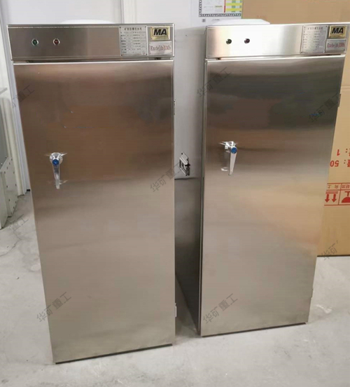 礦用防爆飲水機(jī)為礦用隔爆兼本安型,防爆標(biāo)志為Exd[ib]I。使用在有甲烷氣體混合物和煤塵爆炸危險的煤礦井下??赏瑫r提供85℃的熱水和常溫水,可供井下工作人員飲用熱水。本加熱器能自動控溫,采用內(nèi)置不銹鋼電加熱管加熱,具有壽命長熱效高,升溫快,噪聲低,具有安全隔爆,省電等特點(diǎn)。