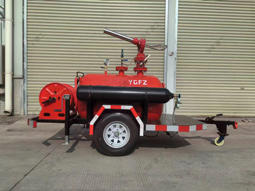 移動干粉滅火裝置,以高壓氮?dú)鉃閯恿Γ瑢迌?nèi)干粉滅火劑通過干粉炮或干粉槍噴向保護(hù)對象,由于干粉的比重較大,在氣流的作用下能覆蓋到火上不致被氣流沖散。干粉在火焰的作用下破壞了原有的結(jié)晶,以新的化學(xué)物質(zhì)中斷了燃燒的鏈?zhǔn)椒磻?yīng),窒息火焰,同時干粉在分解過程中大量吸熱,使著火區(qū)域溫度迅速下降,從而控制撲滅火災(zāi)。