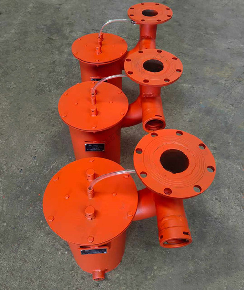 負(fù)壓自動放水器主要由通大氣閥、負(fù)壓平衡管、托盤、側(cè)導(dǎo)向桿、磁鐵、中心導(dǎo)向桿、外筒、放水閥保護(hù)罩、放水閥、導(dǎo)向座、浮漂、進(jìn)水閥等組成。是一種瓦斯抽采系統(tǒng)的自動放水器。它使得井下瓦斯抽采管路由原來的人工放水改為全自動無電源放水,并可以在井下安裝操作,既方便又省事。
