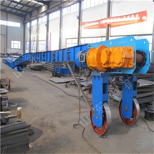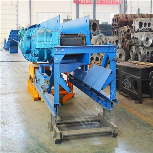 刮板轉(zhuǎn)載機是一種可以縱向整體移動的重型刮板輸送機,其長度較小,便于隨著采煤工作面的推進(jìn)和帶式輸送機的收縮而整體移動。轉(zhuǎn)載機安裝在采煤工作面運輸巷中,與可伸縮帶式輸送機配套使用,同工作面刮板輸送機銜接配合順槽用刮板轉(zhuǎn)載機有軋制中部槽組裝式和整體組焊箱式結(jié)構(gòu)兩種,主要用于綜合機械化采煤,在長壁工作面刮板輸送機和順槽可伸縮皮帶機之間起轉(zhuǎn)載輸送煤炭的作用。使用轉(zhuǎn)載機后,可以避免順槽可伸縮皮帶機機尾的頻繁移動,從而保證工作面生產(chǎn)的順利進(jìn)行。刮板轉(zhuǎn)載機主要應(yīng)用于高產(chǎn)、高效綜合機械化工作面順槽轉(zhuǎn)載輸送煤炭。它是由中部槽、鏈條、刮板及牽引系統(tǒng)組成。