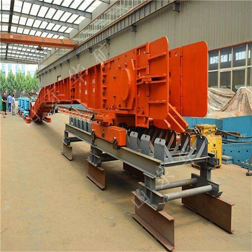 刮板轉(zhuǎn)載機是一種可以縱向整體移動的重型刮板輸送機,其長度較小,便于隨著采煤工作面的推進和帶式輸送機的收縮而整體移動。轉(zhuǎn)載機安裝在采煤工作面運輸巷中,與可伸縮帶式輸送機配套使用,同工作面刮板輸送機銜接配合順槽用刮板轉(zhuǎn)載機有軋制中部槽組裝式和整體組焊箱式結(jié)構(gòu)兩種,主要用于綜合機械化采煤,在長壁工作面刮板輸送機和順槽可伸縮皮帶機之間起轉(zhuǎn)載輸送煤炭的作用。使用轉(zhuǎn)載機后,可以避免順槽可伸縮皮帶機機尾的頻繁移動,從而保證工作面生產(chǎn)的順利進行。刮板轉(zhuǎn)載機主要應(yīng)用于高產(chǎn)、高效綜合機械化工作面順槽轉(zhuǎn)載輸送煤炭。它是由中部槽、鏈條、刮板及牽引系統(tǒng)組成。