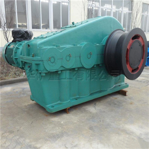 調(diào)車絞車適用于煤礦、選煤廠、電廠、冶金礦場、鋼鐵廠、水泥廠、港口等場所調(diào)度列車之用。該絞車為無機(jī)繩摩擦式傳動(dòng),與導(dǎo)向輪、托滾、壓滾、滑車等輔機(jī)配套組成列車系統(tǒng)。調(diào)車絞車系統(tǒng)可以實(shí)現(xiàn)正反雙向重載牽車。絞車由電動(dòng)機(jī)、聯(lián)軸器、制動(dòng)器、減速器以及摩擦輪等幾部件分組成。電機(jī)采用變頻電機(jī),配以變頻電控柜,可以實(shí)現(xiàn)無機(jī)變速,重載時(shí)采用低速恒扭矩啟動(dòng)、頻率在5~50H范圍內(nèi)可調(diào),空載時(shí)采用高速恒功率運(yùn)行、使絞車運(yùn)行速度快、效率高、頻率在50~80Hz范圍內(nèi)可調(diào)。減速器采用雙圓弧齒輪傳動(dòng),具有傳動(dòng)比大、體積小、傳動(dòng)效率高、噪音低、承載能力強(qiáng)等優(yōu)點(diǎn)。電機(jī)與減速器之間采用帶制動(dòng)輪的聯(lián)軸器,制動(dòng)器為手動(dòng)、自動(dòng)2用,使制動(dòng)更安全可靠。摩擦輪采用高牌號(hào)鑄鋼件,機(jī)械強(qiáng)度高、耐磨性能好、使用壽命長。摩擦輪與減速器輸出軸采用脹套聯(lián)系,安裝拆卸方便。絞車主機(jī)用鋼絲繩與輔機(jī)連成牽車系統(tǒng),輔機(jī)包括導(dǎo)向輪、壓滾、托輪、滑車、支持輪、重垂、重垂架等配件。鋼絲繩在主機(jī)摩擦輪上纏繞四圈后穿過導(dǎo)向輪、壓滾、滑車,兩頭固定。托滾放置在鋼絲繩下方起襯托作用,重垂通過支架輪將滑車張緊,使鋼絲繩始終有一定的張緊力,保證鋼絲繩在摸查輪上產(chǎn)生足夠大的摩擦力,以拉動(dòng)整列車火車。整個(gè)工作過程如下∶電機(jī)啟動(dòng)、驅(qū)動(dòng)減速器、使摩擦輪傳動(dòng),通過摩擦力使鋼絲繩運(yùn)動(dòng)。改變電機(jī)的轉(zhuǎn)動(dòng)方向?qū)⒏淖兞熊嚨倪\(yùn)動(dòng)方向,一達(dá)到調(diào)運(yùn)列車的需要調(diào)車絞車分為單摩擦輪調(diào)車絞車 雙摩擦輪調(diào)車絞車及四摩擦輪調(diào)車絞車又分為裸露摩擦輪和隱藏摩擦輪。就安全因素而言,隱藏式摩擦輪結(jié)構(gòu)更為安全