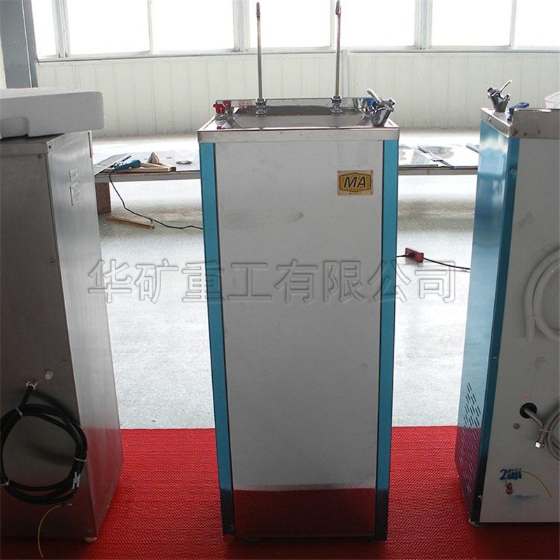 礦用防爆飲水機(jī)為礦用隔爆兼本安型,防爆標(biāo)志為Exd[ib]I。使用在有甲烷氣體混合物和煤塵爆炸危險(xiǎn)的煤礦井下??赏瑫r(shí)提供85℃的熱水和常溫水,可供井下工作人員飲用熱水。本加熱器能自動(dòng)控溫,采用內(nèi)置不銹鋼電加熱管加熱,具有壽命長熱效高,升溫快,噪聲低,具有安全隔爆,省電等特點(diǎn)。