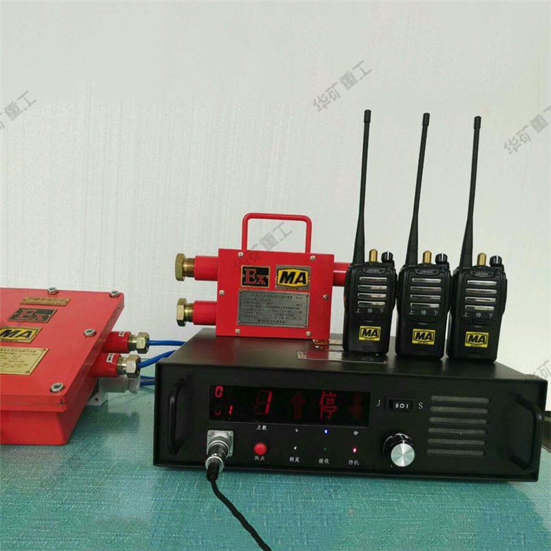 本系統(tǒng)實現(xiàn)井上機房人員和斜井機車或豎井吊罐中維修人員相互通話的通訊設(shè)備。它可以有效地傳遞語音及打點信號,使井上有關(guān)人員和斜井及豎井內(nèi)人員建立起緊密的聯(lián)系。系統(tǒng)由設(shè)在機房內(nèi)的基地臺、穩(wěn)壓電源,鋪設(shè)在井道中泄漏電纜以及人身攜帶的手持機所組成。基地臺收到的語音、打點信號由機外的話筒喇叭發(fā)出,在85dB的噪音環(huán)境中仍能與手持機進行通話或打點聯(lián)系。(基地臺具有記憶并顯示打點次數(shù)的功能)。該系統(tǒng)配套的設(shè)備均可以在具有煤塵、爆炸性氣體的礦井中使用。安裝了這套設(shè)備,能夠保障斜井人員及豎井檢修人員安全、可靠地工作?;嘏_、穩(wěn)壓電源安放在機房的桌面上,使用127V交流照明電。