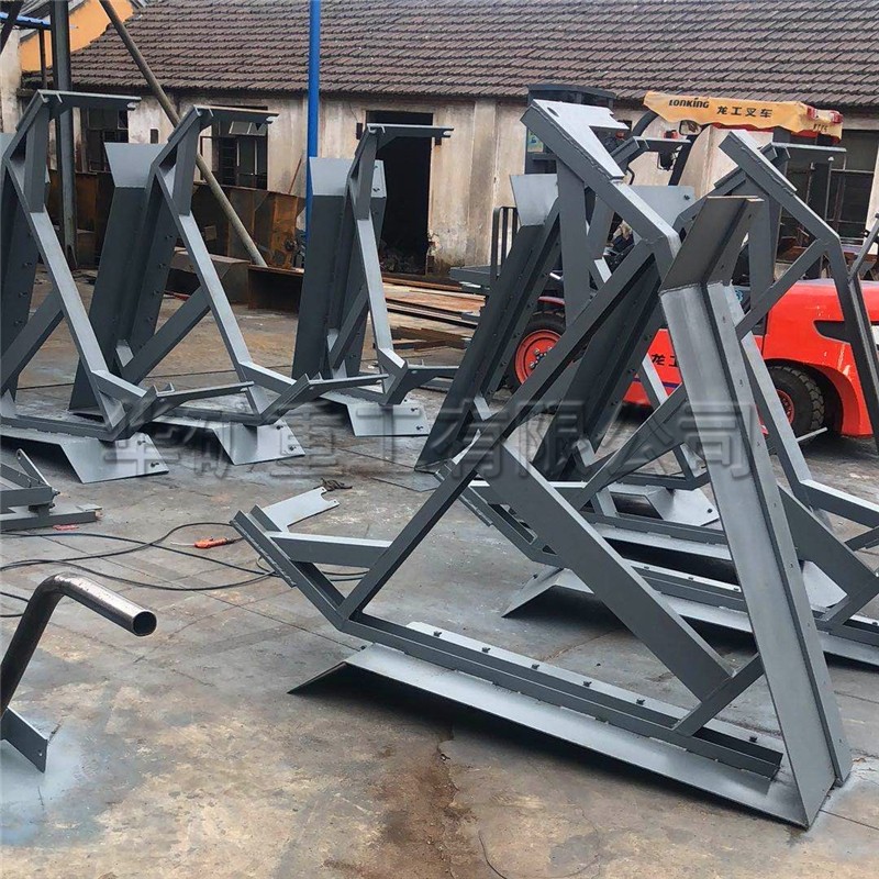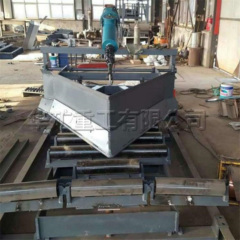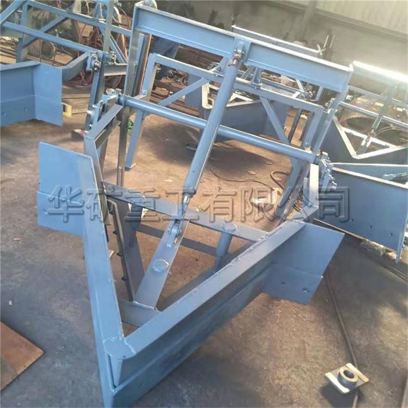4.采用變形托輥組與電液推桿工作機械同步,推桿一個工作循環(huán),變形托輥組完成從槽形到平形再到槽形的自動變換。