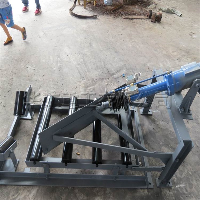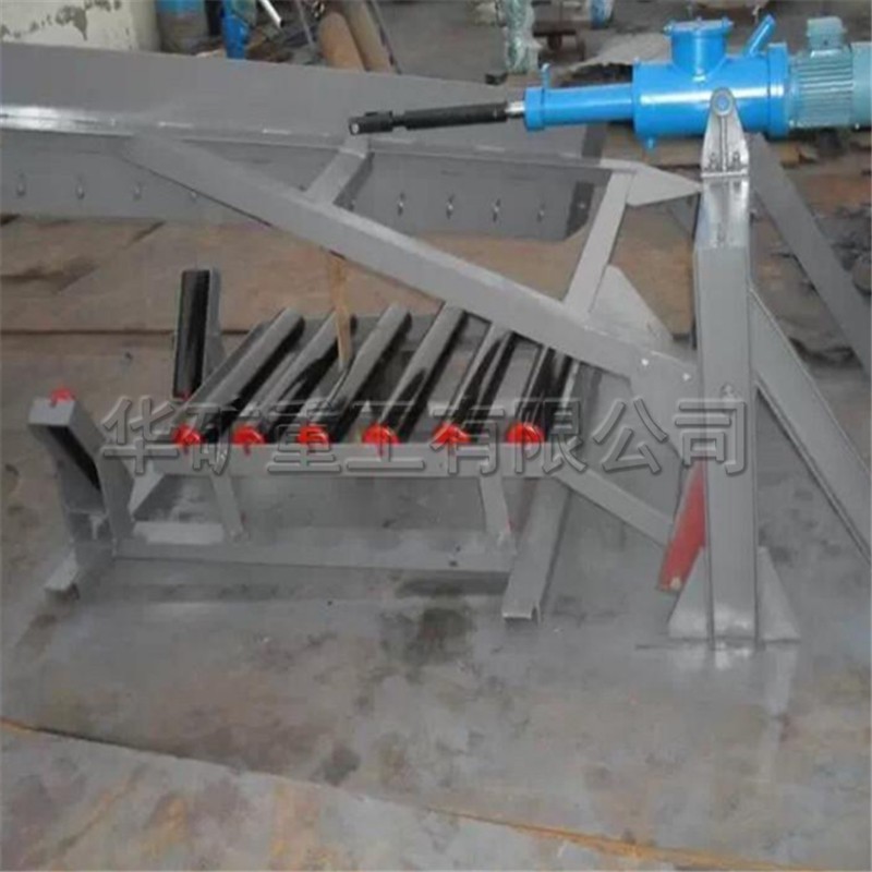 犁式卸料器是安裝在膠帶輸送機的中間架上,能將膠帶輸送的物料均勻、連續(xù)卸入料斗或需要場所的皮帶輸料輔機。本卸料器比老式卸料器增加了可變槽角、副犁刀等,并改用電液推桿動力源??朔死鲜叫读掀骼缌喜槐M、刮皮帶以及電動推桿過載能力差,常燒毀電機,頂彎絲杠,機械易損壞等缺點。電液動犁式卸料器廣泛用于礦山、冶金、電場、煤場、集運站、港口碼頭等輸送機的分段卸料。