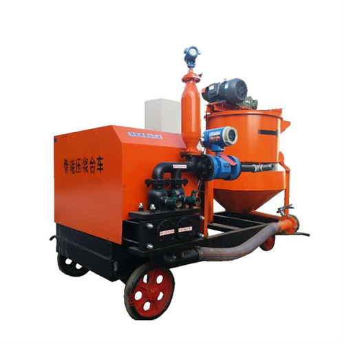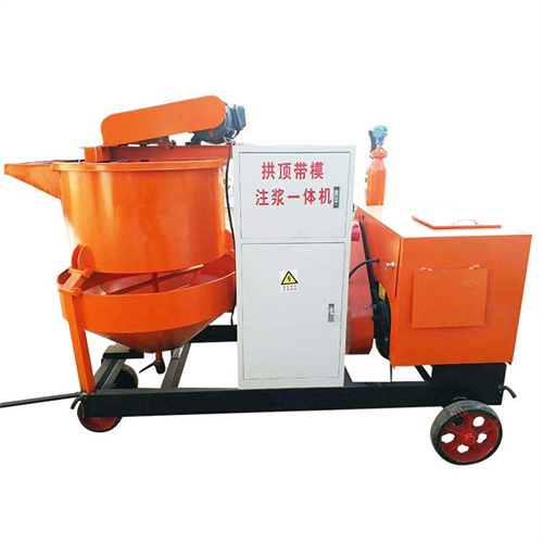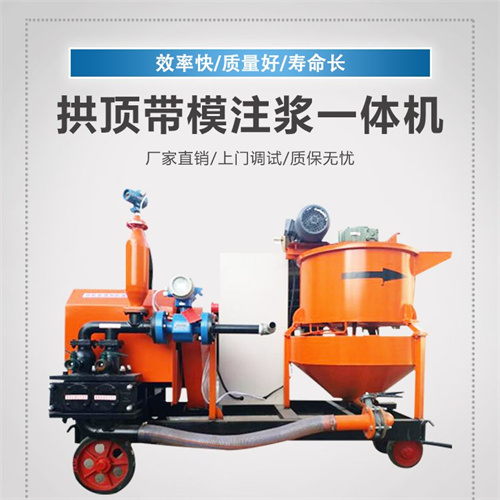 拱頂帶模注漿一體機帶模注漿工藝原理在襯砌臺車拱頂設(shè)置注漿孔、排氣孔及觀察口,并在襯砌臺車上安裝注漿管、排氣管等。安裝注漿管并固定,在開口處安裝法蘭,在法蘭內(nèi)安裝注漿管并固定。在襯砌混凝土澆筑時,該注漿管的作用就是觀察口。帶模注漿是在襯砌混凝土澆筑結(jié)束后及時注漿,由于有臺車保護可采用較高的壓力(高達1.0MPa)進行注漿,注漿材料與襯砌混凝土結(jié)合成整體 工作原理:電機通過減速機驅(qū)動具有特定軌跡的工作凸輪,推動前進,回程由彈簧使復(fù)位,形成的往返行程。在返程時工作缸和閥室相對形成真空,上閥球下落,上閥室關(guān)閉,下閥球升起,下閥室打開,將砂漿由料斗經(jīng)吸漿管下閥室和工作缸。當(dāng)前進時工作缸和閥室內(nèi)壓力上升,下閥球下落,下閥室關(guān)閉,上閥球升起,上閥室打開,缸將工作缸及閥室內(nèi)的砂漿由上閥室泵出,如此循環(huán)反復(fù)。