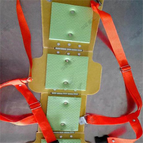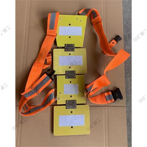固定采用熱熔玻璃膠膠合,配合雙面鉚釘,美觀且解決了護墊脫落問題。鏈接采用不銹鋼加厚合頁,使用時間長。雙面鉚釘鉚合,堅固且接觸面平滑舒適。背帶采用2.5cm加厚橙色織帶,舒適。胸前加兩排橫檔插扣,利于固定背甲貼身作業(yè),減少脫落。制作板材的選材嚴格,工藝好且美觀的板材制作。沒塊板材都經(jīng)過打磨。背帶與板材鏈接采用厚鐵制鏈接件,連接件設計合理,可適當轉動,既堅固又舒適。加貼反光條,昏暗的燈光下也可以看清