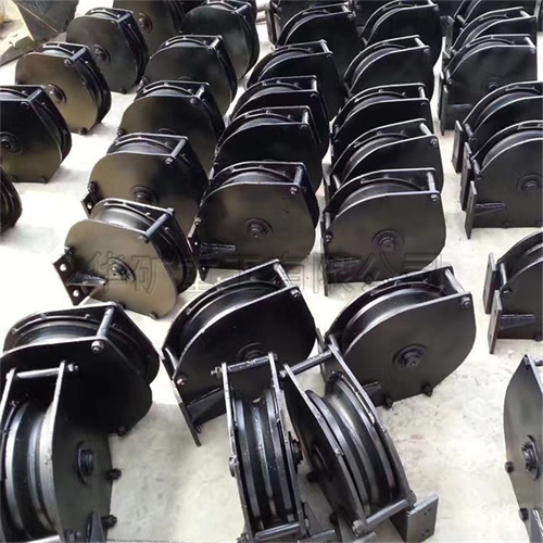 耙斗裝巖機(jī)導(dǎo)向輪又名滑輪,區(qū)別于尾輪。安裝在裝巖機(jī)的中部極端部,用以引導(dǎo)和改變鋼絲繩的方向.它由側(cè)板,繩輪,心軸,滾動軸承等組成,并采用防塵結(jié)構(gòu),以延長其使用壽命.耙斗裝巖機(jī)用導(dǎo)向輪用于對軟體管道或者鋼絲,尼龍繩等軟體線性物體移動過程中的方向引導(dǎo)。導(dǎo)向輪帶有滑輪結(jié)構(gòu),在某些項目或產(chǎn)品中導(dǎo)向輪會起到省力的作用。耙斗裝巖機(jī)用導(dǎo)向輪由套筒、調(diào)節(jié)絲杠、腳輪、底座、轉(zhuǎn)向座和銷釘組成,套筒內(nèi)套裝有調(diào)節(jié)絲杠,調(diào)節(jié)絲杠的一端安裝有搖把,另一端通過調(diào)整絲母與腳輪架連接,腳輪架與腳輪連接;轉(zhuǎn)向座通過銷釘與底座連接,底座與轉(zhuǎn)向座上分別設(shè)有相同中心距的對應(yīng)孔,U型銷釘依次插入至轉(zhuǎn)向座和底座對應(yīng)孔內(nèi),U型螺栓將底座固定在拖車的矩形管上。