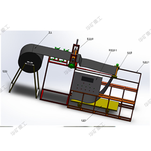 煤礦井下使用的鋼絲繩皮帶在更換時,需要在地面將成卷的皮帶疊放于平板車上,以便運輸和下井。每卷皮帶重10噸以上,人工疊帶不僅耗費大量的人力,而且疊帶效率低,同時存在較大的安全隱患。