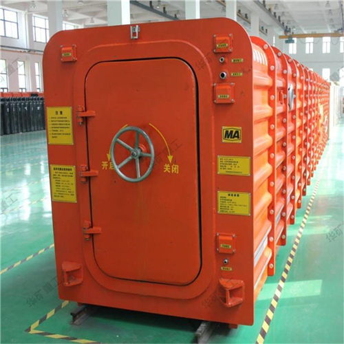 礦用可移動式救生艙是一種新型的緊急避險自救逃生裝置。適用于高瓦斯、高溫礦井掘進(jìn)頭、運輸巷等在災(zāi)變時期存在高溫、爆炸、冒頂、有毒有害氣體的環(huán)境。突出煤層的掘進(jìn)巷道長度及采煤工作面推進(jìn)長度超過500米時,應(yīng)在距離工作面500米范圍設(shè)置可移動式救生艙。其他礦井應(yīng)在距離采掘工作面1000米范圍內(nèi)建設(shè)避難硐室或設(shè)置可移動式救生艙。當(dāng)煤礦井下突發(fā)瓦斯突出、火災(zāi)、坍塌等事故,礦井隧道堵塞或動力電源斷電時,井下遇險人員不能立即升井逃生脫險的緊急情況下,可快速進(jìn)入避難艙內(nèi)等待救援。