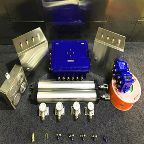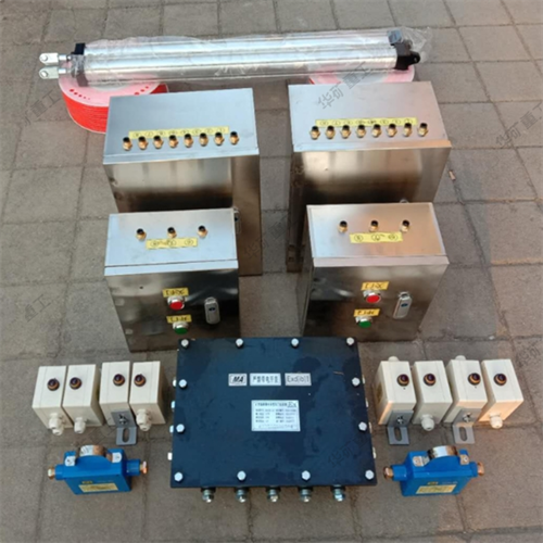 本裝置由1臺ZMK127-Z礦用風門電控裝置主機、4臺FHF10礦用本安型紅外發(fā)送器、4臺FHS10礦用本安型紅外接收器、2臺GFK60礦用風門開閉狀態(tài)傳感器、2臺KXB127礦用隔爆兼本安型語言報警器和2臺DFB-8-DH-1.0礦用隔爆型電磁閥組成。