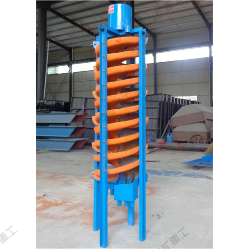 螺旋溜槽設(shè)備的主體部件,由玻璃鋼制成的螺旋片用螺栓連接而成。在螺旋槽的內(nèi)表面上涂以耐磨襯里,通常是聚氨脂耐磨膠或摻以人造金鋼砂的環(huán)氧樹脂。在螺旋溜槽的上部有分礦器和給礦槽,下部有產(chǎn)物截取器和接礦槽。整個設(shè)備用鋼框垂直地架起。螺旋溜槽的工作特點是在槽的末端分別截取精、中、尾礦,且在分選過程中不加沖洗水。