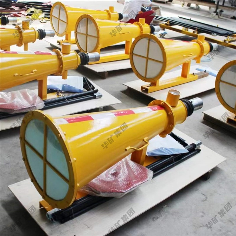 煤礦自動(dòng)隔爆裝置是一款經(jīng)濟(jì)實(shí)用、安全效能突出的新型的隔抑爆產(chǎn)品,與隔爆水袋相比,其安全效能更加穩(wěn)定?!∶旱V井下自動(dòng)隔爆裝置安裝在有瓦斯、煤塵爆炸危險(xiǎn)的巷道中,當(dāng)發(fā)生瓦斯或煤塵爆炸時(shí)能自動(dòng)噴出滅火物質(zhì),及時(shí)淬熄在其保護(hù)范圍內(nèi)的爆炸火焰,避免火焰繼續(xù)蔓延引發(fā)危害更大的二次爆炸,將瓦斯爆炸造成的危害降低到。煤礦井下自動(dòng)隔爆裝置采用錨桿連接的方式固定在巷道頂板上方,并根據(jù)巷道情況選擇裝置的布置方式、安裝數(shù)量等。沖擊波接收器面向爆炸產(chǎn)生的沖擊波和火焰的蔓延方向。沖擊波先于火焰到達(dá)沖擊波接收器,并使觸發(fā)裝置動(dòng)作,隔爆介質(zhì)噴出,形成高效能霧狀隔爆區(qū)域,該霧狀隔爆介質(zhì)可懸浮足夠時(shí)間以等待火焰到來并使之熄滅,起到阻止爆炸蔓延的作用。