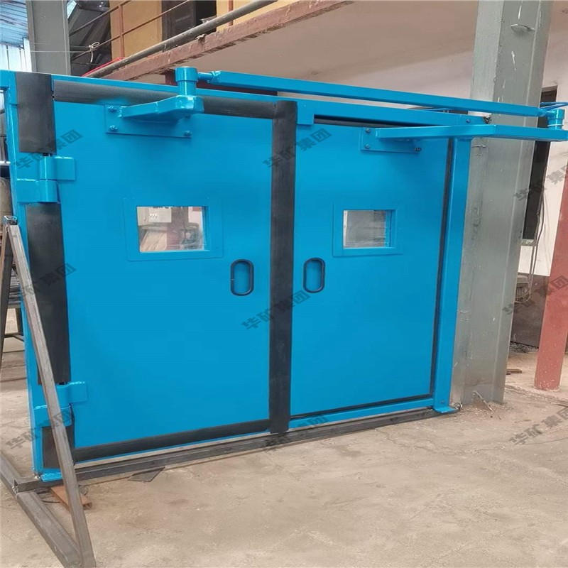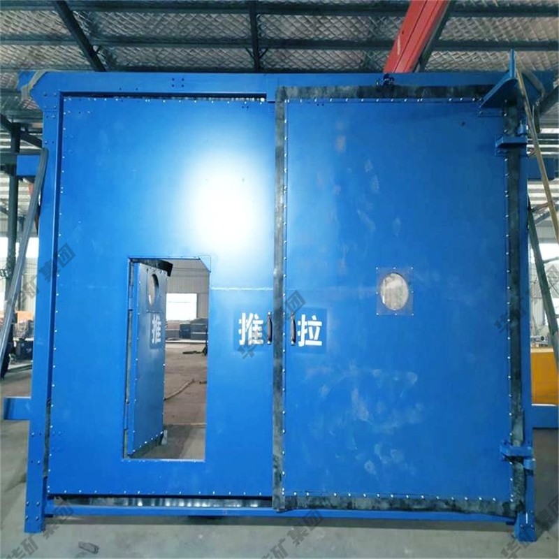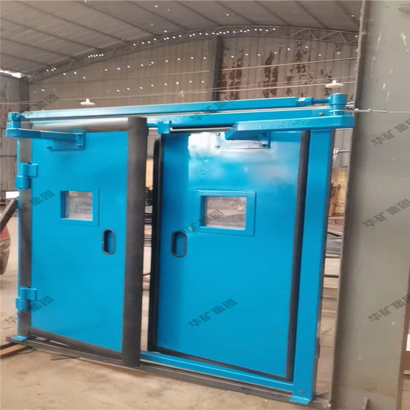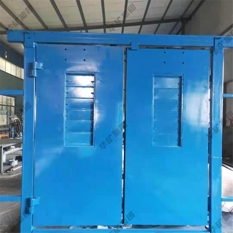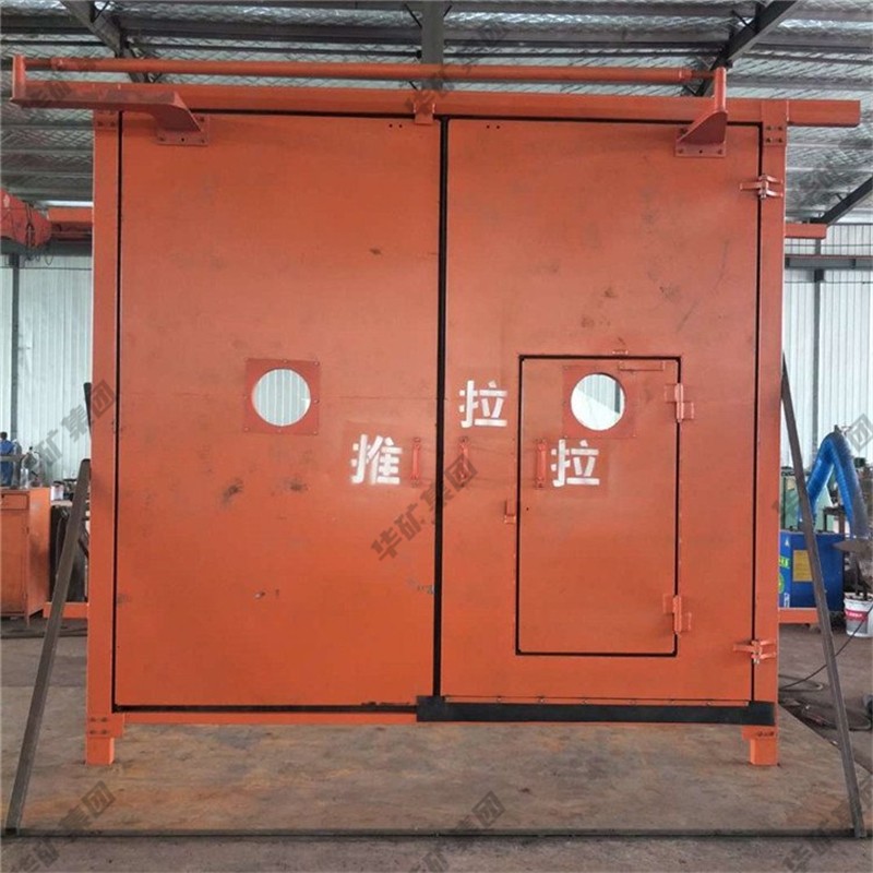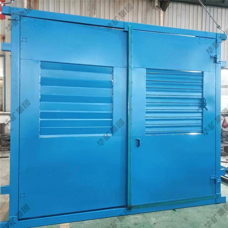 礦用無壓風(fēng)門主要用于礦山井下進(jìn)回風(fēng)巷和主要進(jìn)回風(fēng)巷之間每個聯(lián)絡(luò)巷中。雙扇無壓風(fēng)門運(yùn)用聯(lián)桿平衡機(jī)構(gòu),開啟力小,不需再設(shè)反向風(fēng)門。