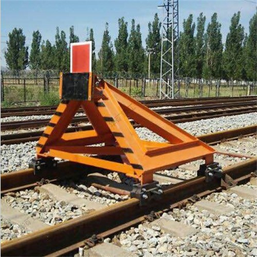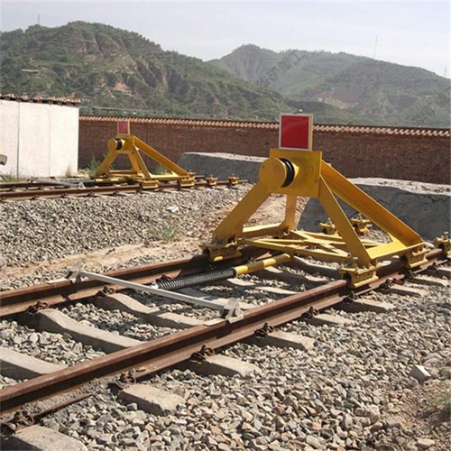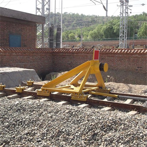 固定擋車器主要用于鐵路盡頭線上的防撞擋車安全防護設備,緩沖頭與車鉤之間通過緩沖橡膠板接觸,承受溜逸車輛車鉤的撞擊,迫使溜逸車輛停止溜逸,針對使用單位的實際情況,為滿足使用單位提出的具體要求而設計的產(chǎn)品。占用線路短,結(jié)構(gòu)簡單,造價較低,維護方便??梢杂迷谲囕v編組較小、沖擊速度不高的場合。