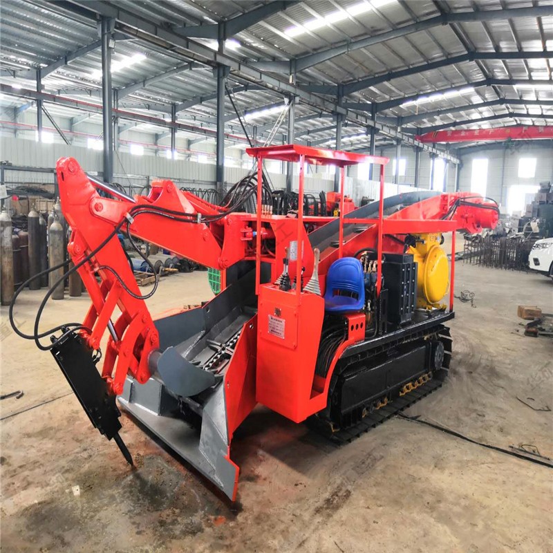 采用底盤分體設(shè)計(jì),通過力強(qiáng),可以靈活的通過巷道“小支脈”。輸送大架采用分體設(shè)計(jì),對于豎井礦山下井安裝極為方便。皮帶采用pvg高拉力阻燃帶使用壽命長,可保證掘進(jìn)巷道距離為360m以上。挖掘式裝載機(jī)扒渣機(jī)具由轉(zhuǎn)彎靈活,操作簡單,掘進(jìn)巷道不用調(diào)頭,效率高等優(yōu)點(diǎn)。