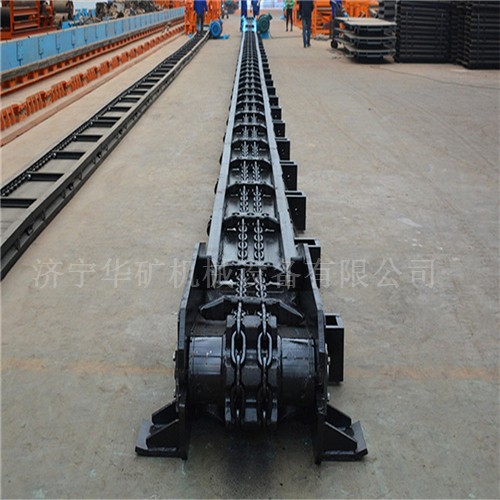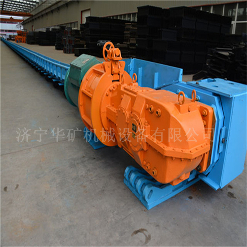 順槽用刮板轉(zhuǎn)載機有軋制中部槽組裝式和整體組焊箱式結(jié)構(gòu)兩種,主要用于綜合機械化采煤,在長壁工作面刮板輸送機和順槽可伸縮皮帶機之間起轉(zhuǎn)載輸送煤炭的作用。使用轉(zhuǎn)載機后,可以避免順槽可伸縮皮帶機機尾的頻繁移動,從而保證工作面生產(chǎn)的順利進行。刮板轉(zhuǎn)載機主要應用于高產(chǎn)、高效綜合機械化工作面順槽轉(zhuǎn)載輸送煤炭。它是由中部槽、鏈條、刮板及牽引系統(tǒng)組成。