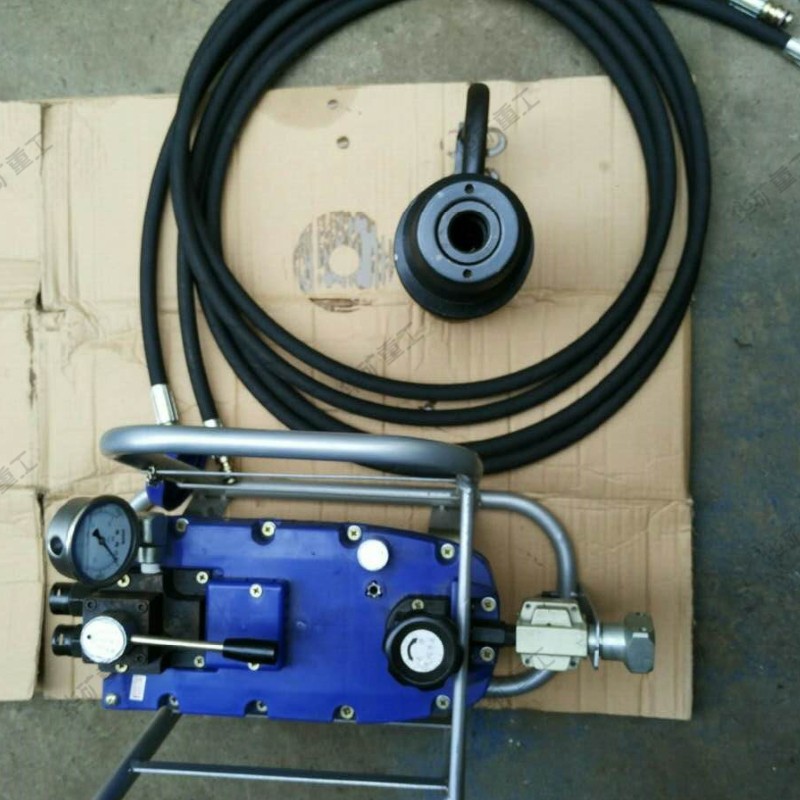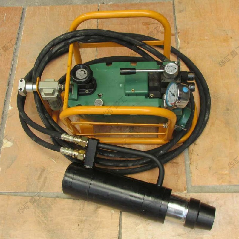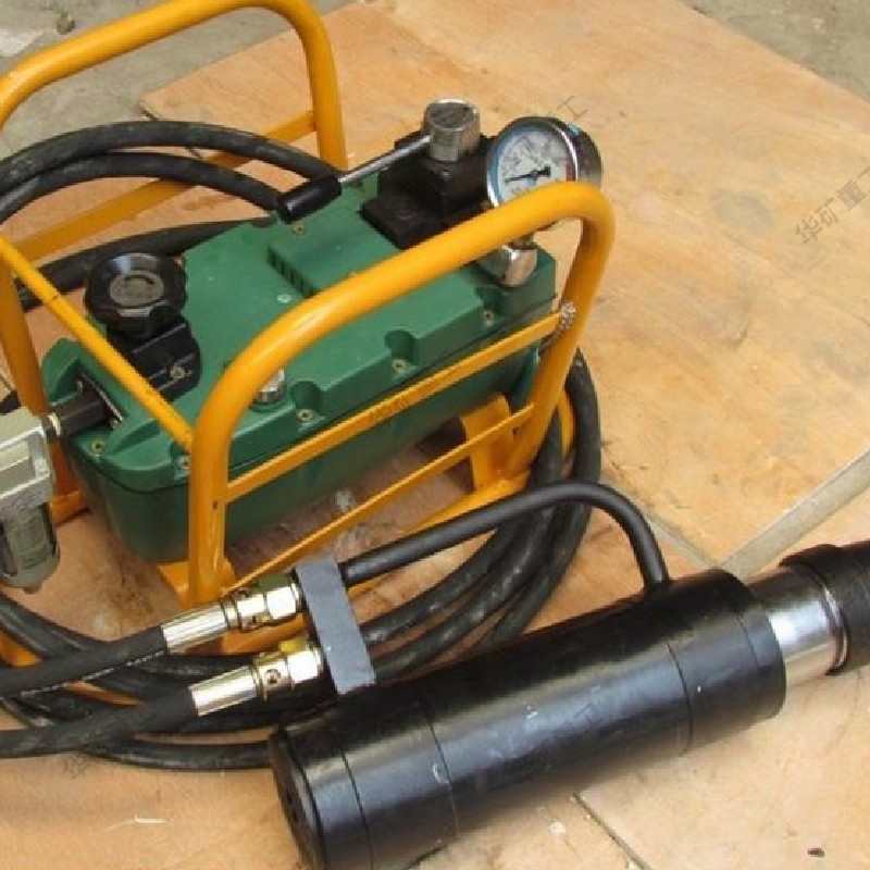 錨索張拉機(jī)具由張拉千斤頂、QYB-55型氣動(dòng)液壓泵以及高壓膠管等組成,構(gòu)成一組煤礦巷道錨索預(yù)應(yīng)力張拉安裝的工具。張拉千斤頂內(nèi)置工具錨,不但實(shí)現(xiàn)自動(dòng)錨固和自動(dòng)退錨,而且保證了操作安全,提高了工作效率。