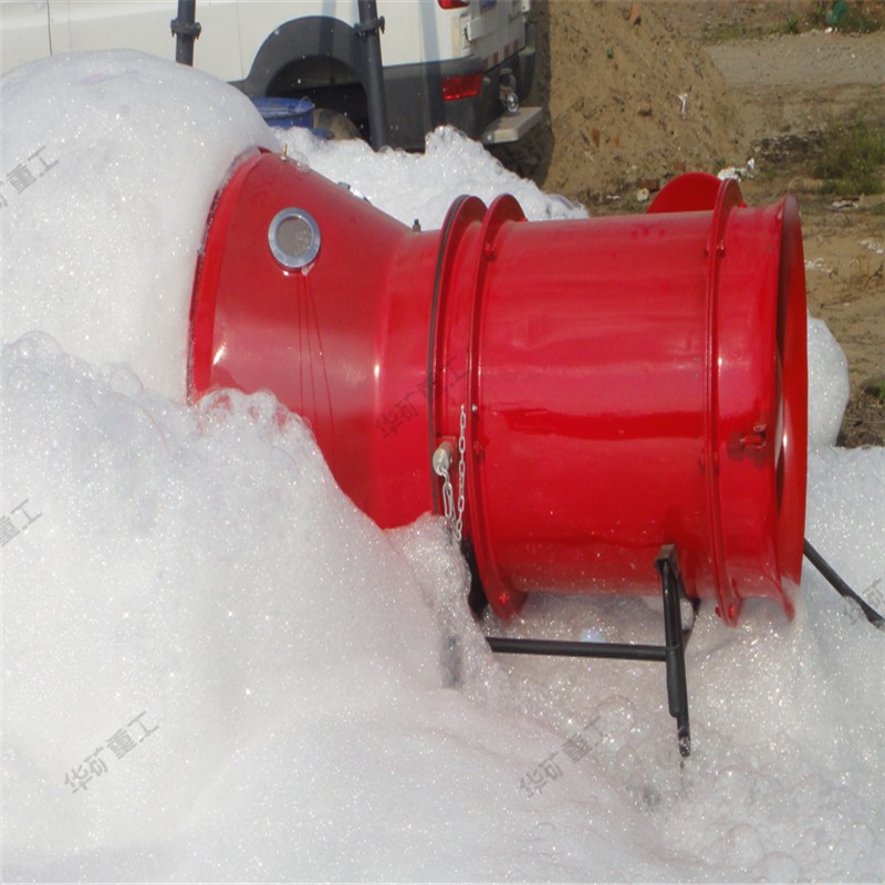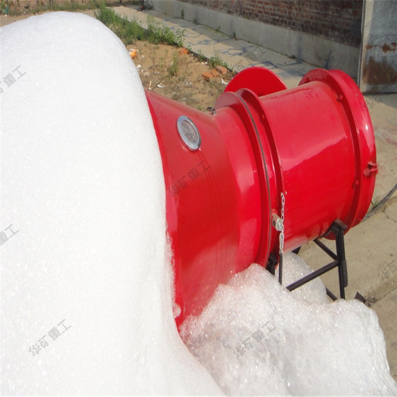 高倍數(shù)空氣泡沫具有滅火速度快、水漬損失小、成本低和無毒等優(yōu)點(diǎn)。實(shí)踐說明,高倍數(shù)泡沫滅火適用于撲滅煤礦井下巷道及地面,地下有限建筑空間。如煤炭、木材、油類火災(zāi)。由于驅(qū)動風(fēng)壓高,可以在巷道中遠(yuǎn)距離火區(qū)的安全地點(diǎn)操作。高倍數(shù)泡沫能迅速覆蓋火源,切斷火場空氣的來源,隔斷輻射熱、熱對流、熱傳導(dǎo)的作用。高倍數(shù)泡沫在燃燒區(qū)汽化而吸收大量的汽化熱。能起隔熱、降溫作用,同時放出大量的水蒸氣,沖淡燃燒區(qū)含氧量,起著窒息的作用。