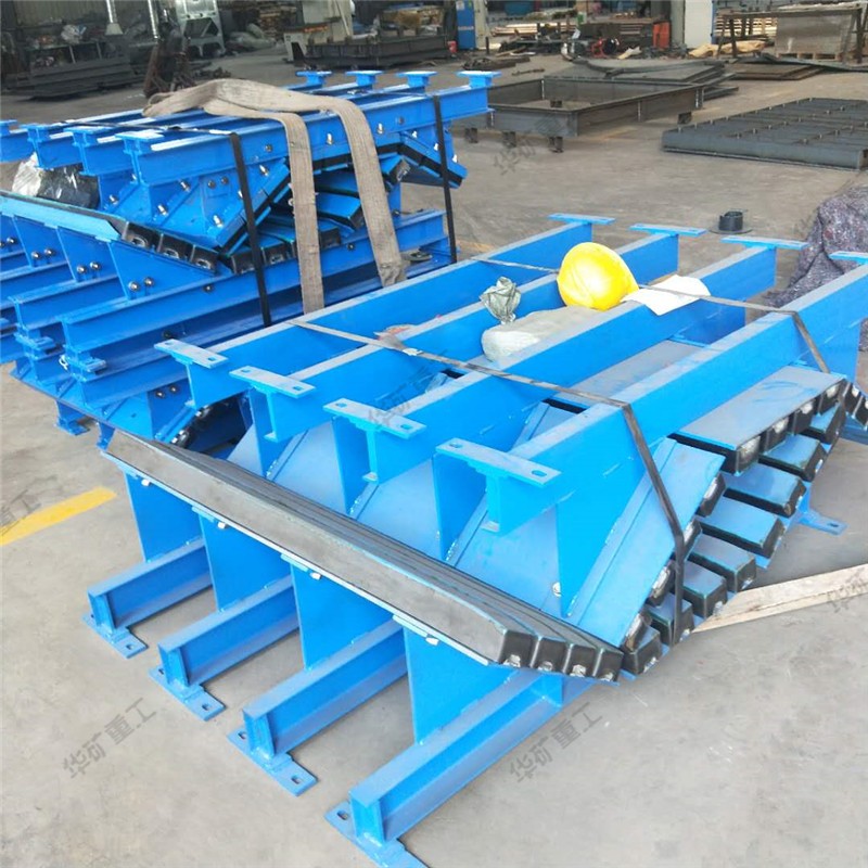 (3)復(fù)合式重載緩沖床相對(duì)緩沖托輥能有效控制皮帶下陷,相對(duì)緩沖床亦能減小皮帶與緩沖條的摩擦力。緩沖條與輸送帶的面接觸,有效防止運(yùn)輸物料對(duì)運(yùn)輸帶的損傷。輸送帶裝載的受力均勻,有利于降低其所需的維護(hù)和修補(bǔ)