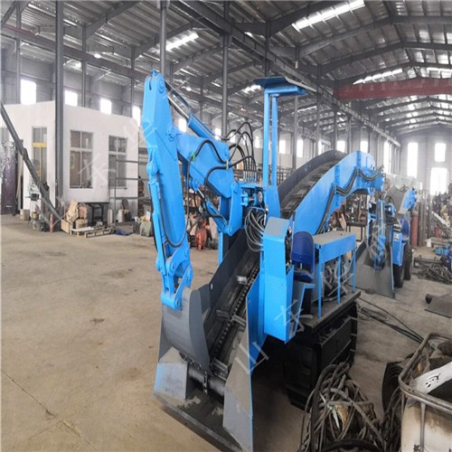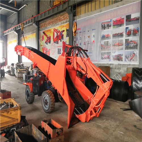 采用底盤分體設(shè)計,通過力強,可以靈活的通過巷道“小支脈”。輸送大架采用分體設(shè)計,對于豎井礦山下井安裝極為方便。皮帶采用pvg高拉力阻燃帶使用壽命長,可保證掘進巷道距離為360m以上。 挖掘式裝載機扒渣機具由轉(zhuǎn)彎靈活,操作簡單,掘進巷道不用調(diào)頭,效率高