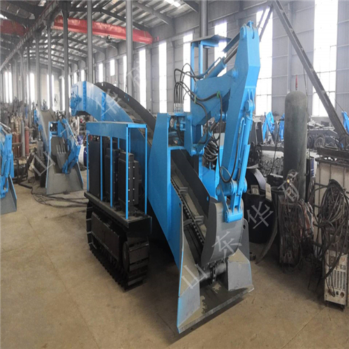 采用底盤分體設(shè)計,通過力強(qiáng),可以靈活的通過巷道“小支脈”。輸送大架采用分體設(shè)計,對于豎井礦山下井安裝極為方便。皮帶采用pvg高拉力阻燃帶使用壽命長,可保證掘進(jìn)巷道距離為360m以上。 挖掘式裝載機(jī)扒渣機(jī)具由轉(zhuǎn)彎靈活,操作簡單,掘進(jìn)巷道不用調(diào)頭,效率高